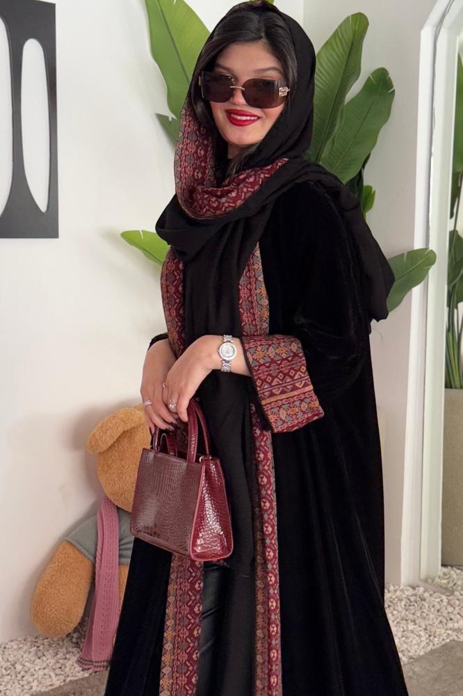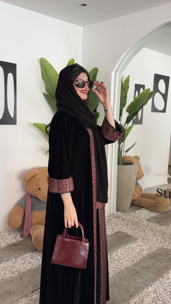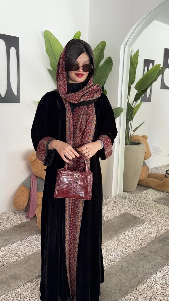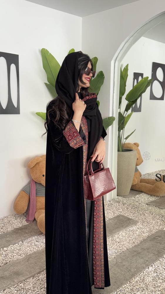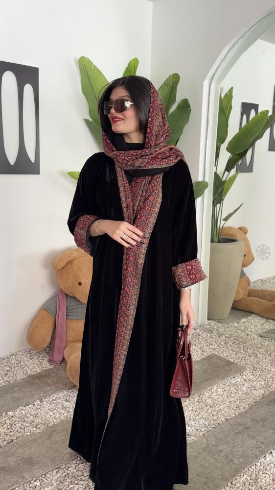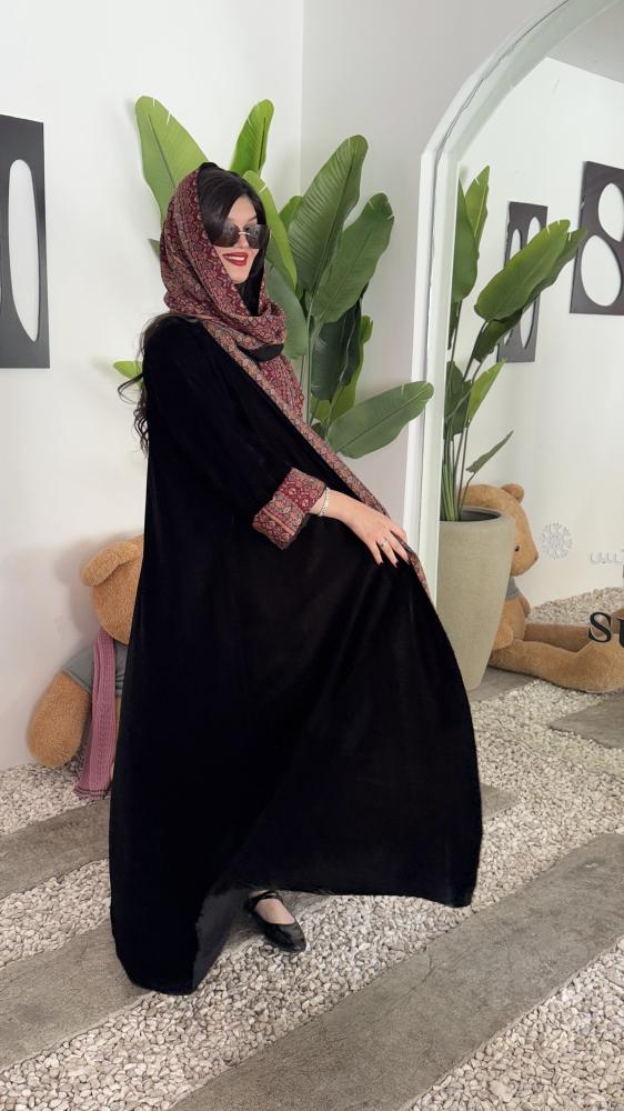 - نوع المنتج: مخمل نص كلوش اسود وكم من الكشمير التدخيلة الطولية من داخل العباية وليس من الخارج