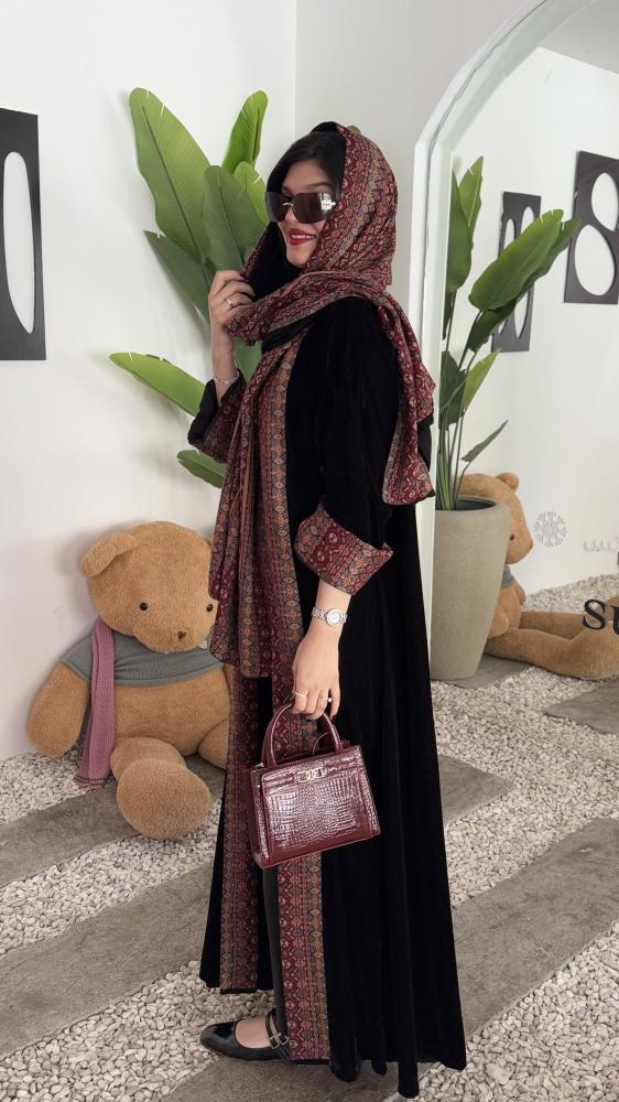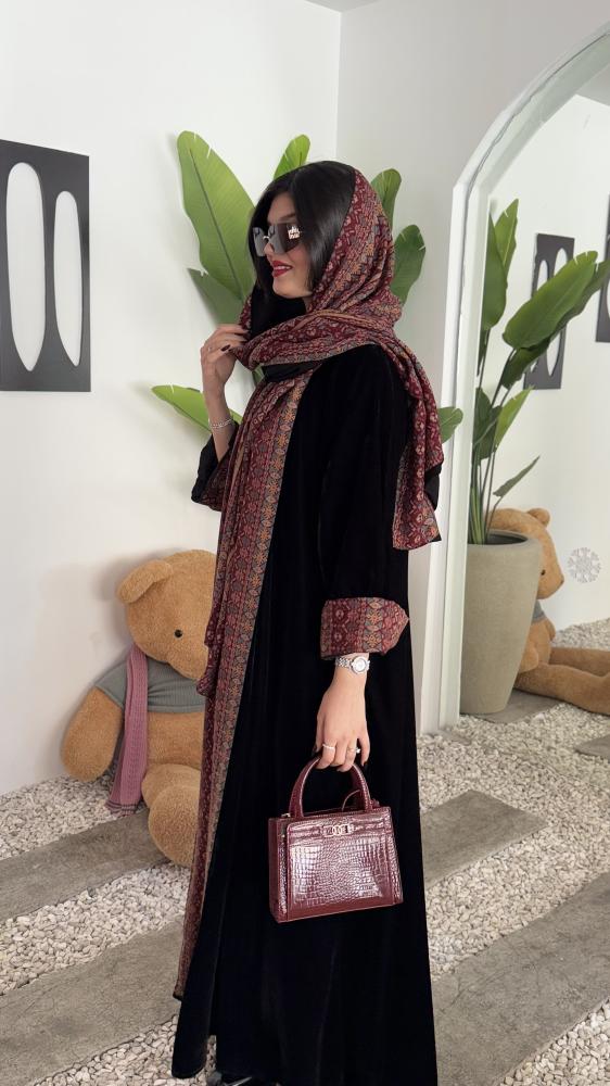 مخمل كلوش وكم كشميري وطرحه بوجهين (إمكانية تغيير لون المخمل أو الخامه)