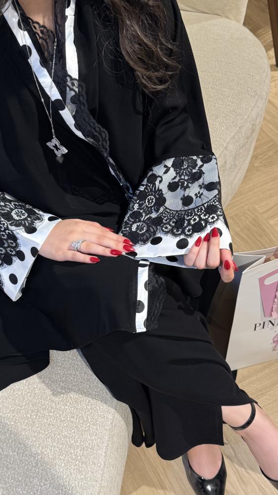 - كلوش بكم منقط تفته مع دانتيل على الأكمام وطرف الطرحه
