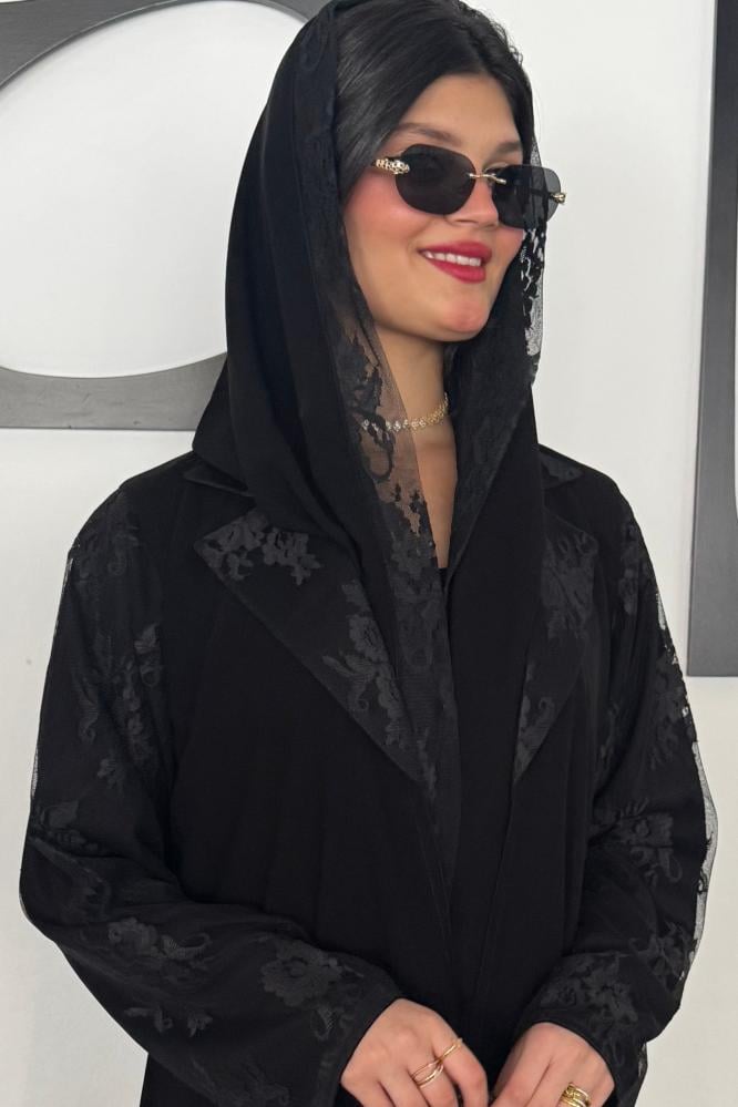كريب بليزر كلوش بدانتيل أسود على كامل الأكمام