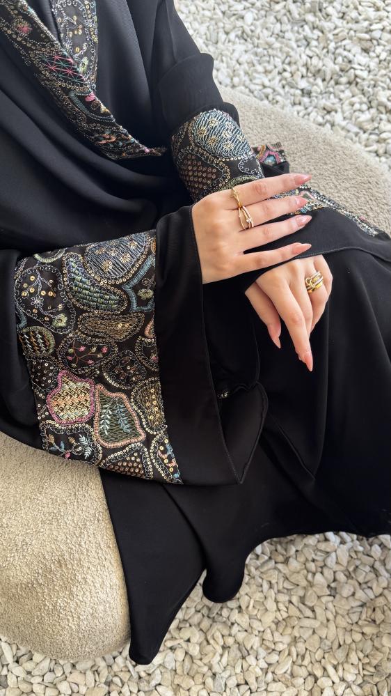 أكمام بتطريز هندي وفتحه بالكم لإخراج اليد أو تركها .