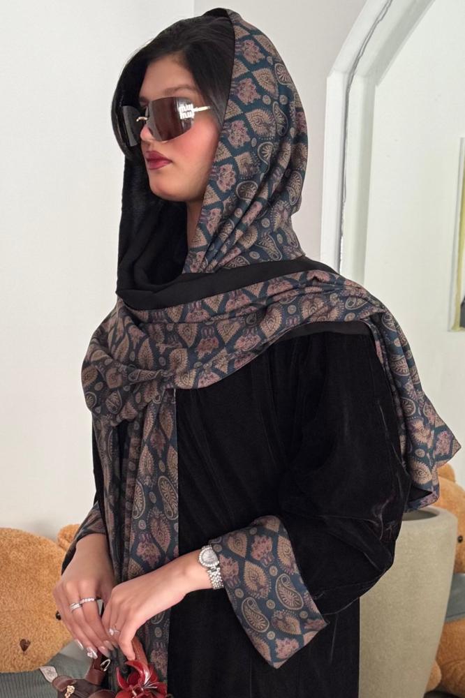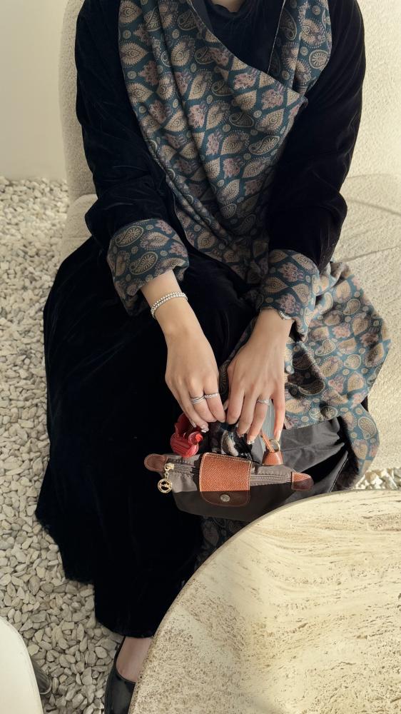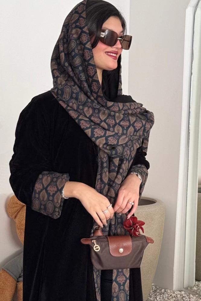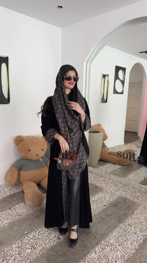 مخمل كلوش وكم كشميري وطرحه بوجهين (إمكانية تغيير لون المخمل أو الخامه)