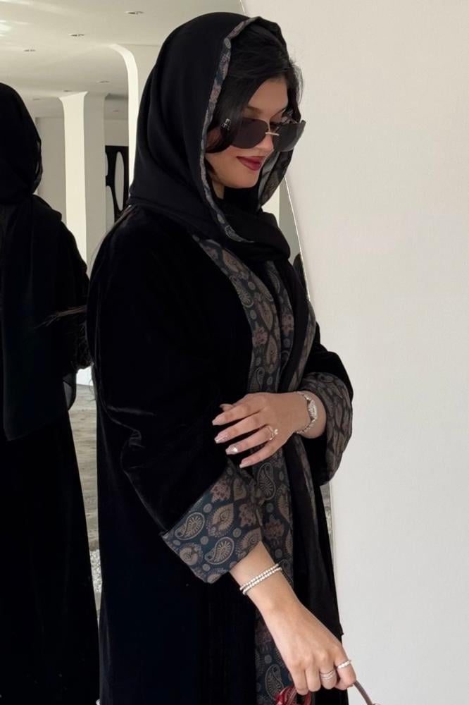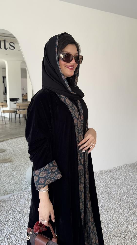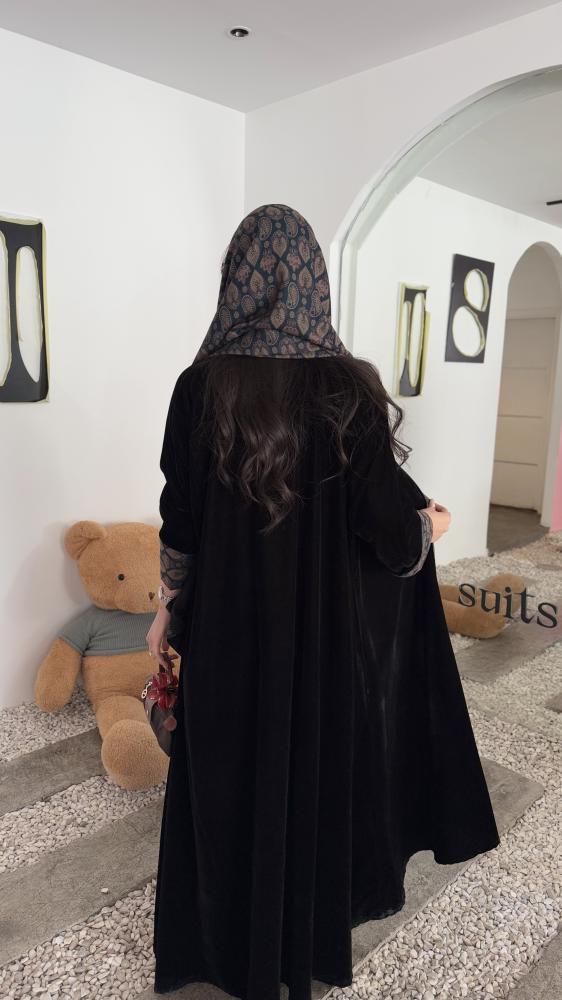 - نوع المنتج: مخمل كلوش اسود وكم من الكشمير التدخيلة الطولية من داخل العباية وليس من الخارج