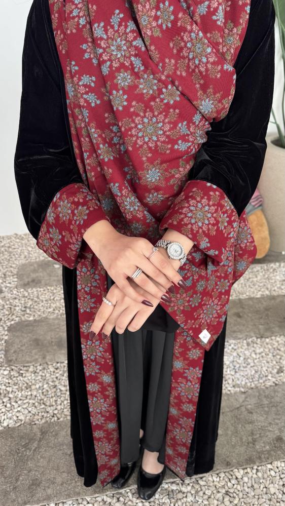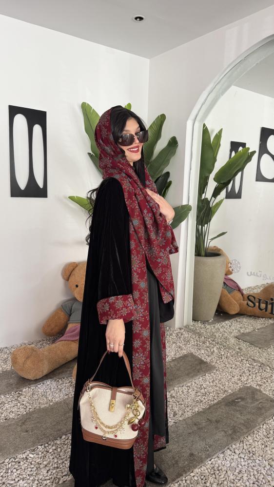 مخمل كلوش بكم كشميري وطرحه بوجهين( كادي )
