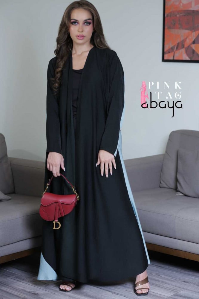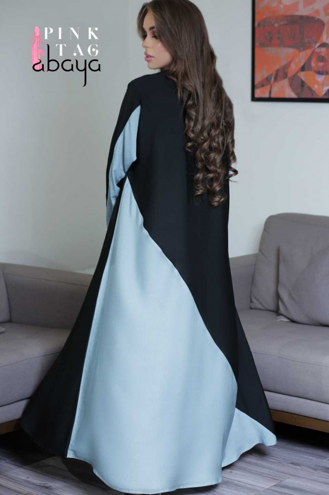 .عباية حرير مغسول نص كلوش باللون الزيتي الغامق مع التيفاني بتصميم أنيق وعصري.