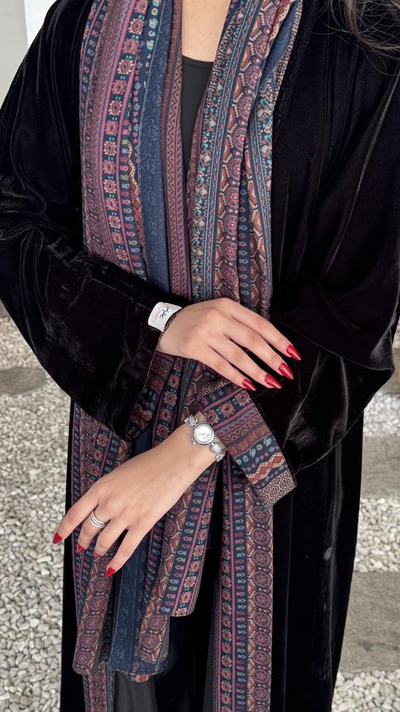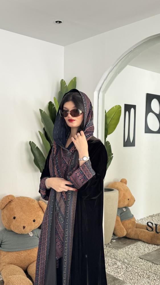 مخمل كلوش بكم كشميري وطرحه بوجهين( زمردة )