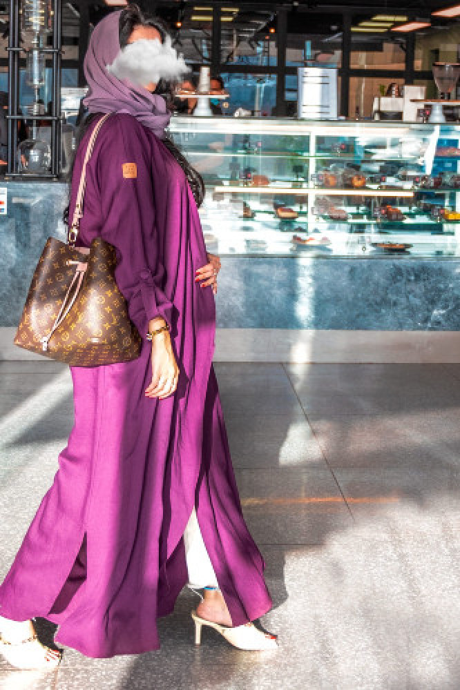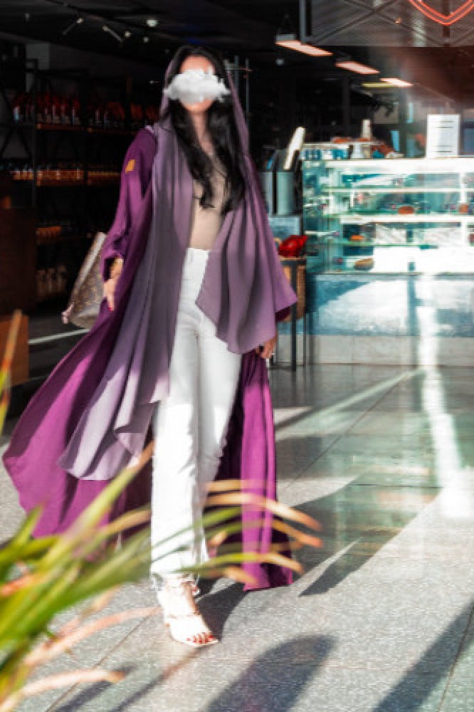 ..تغسل بشامبو العباية وتكوى فقط على البخار.