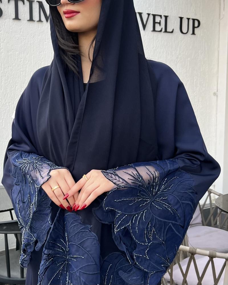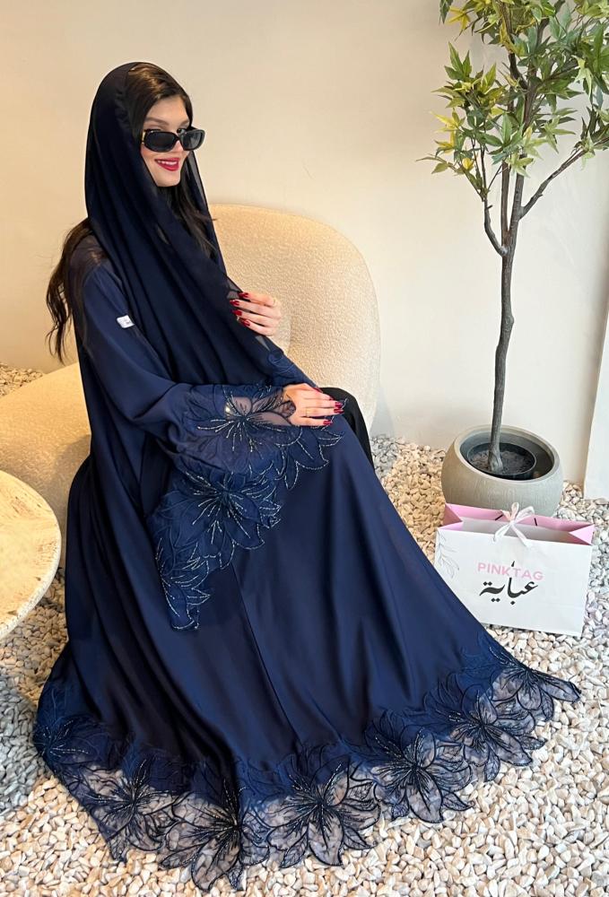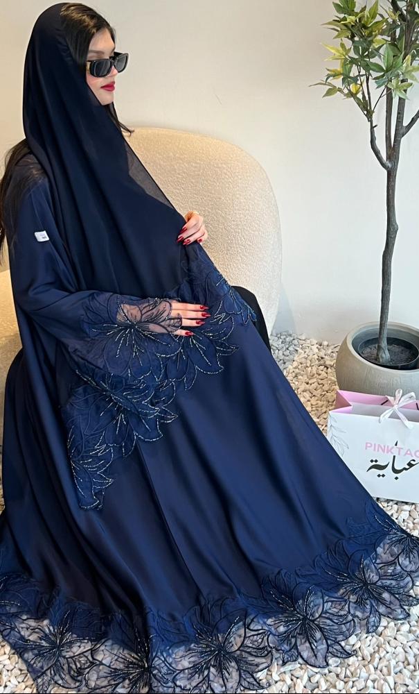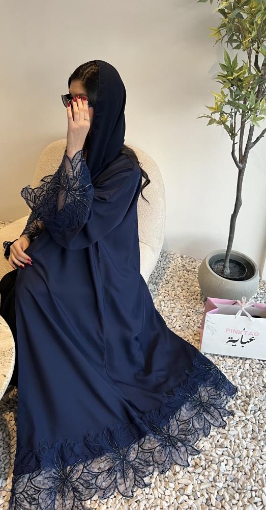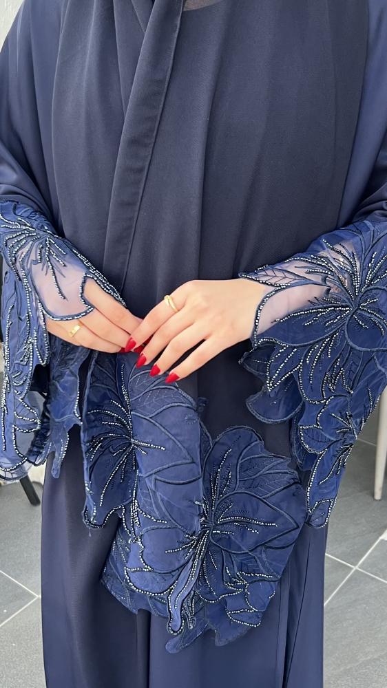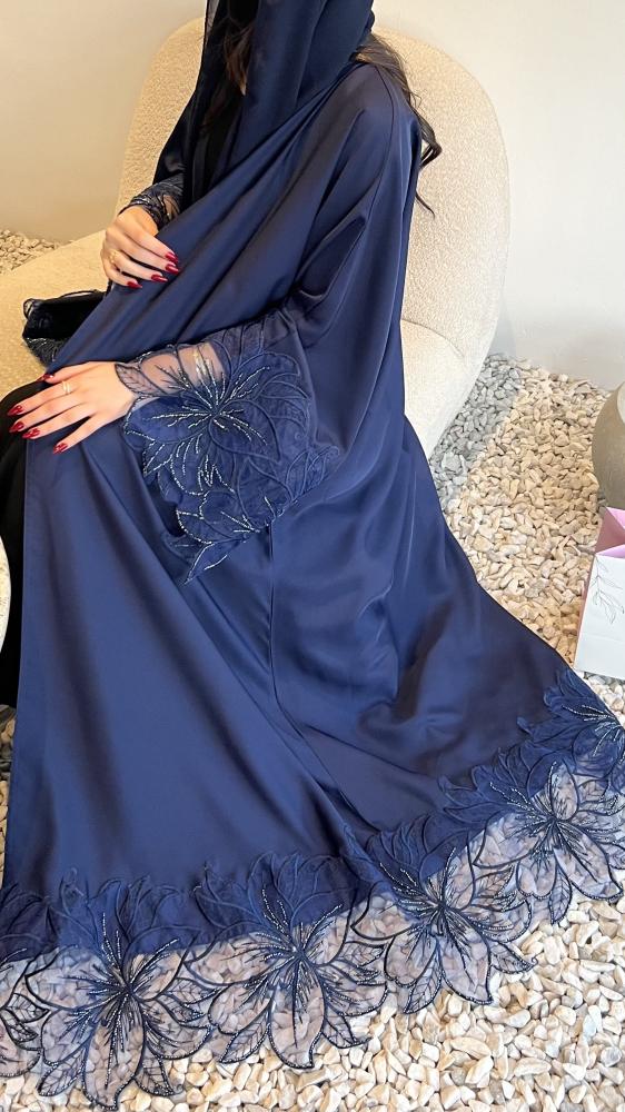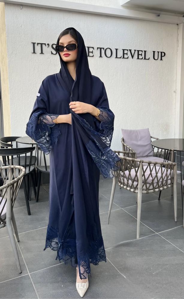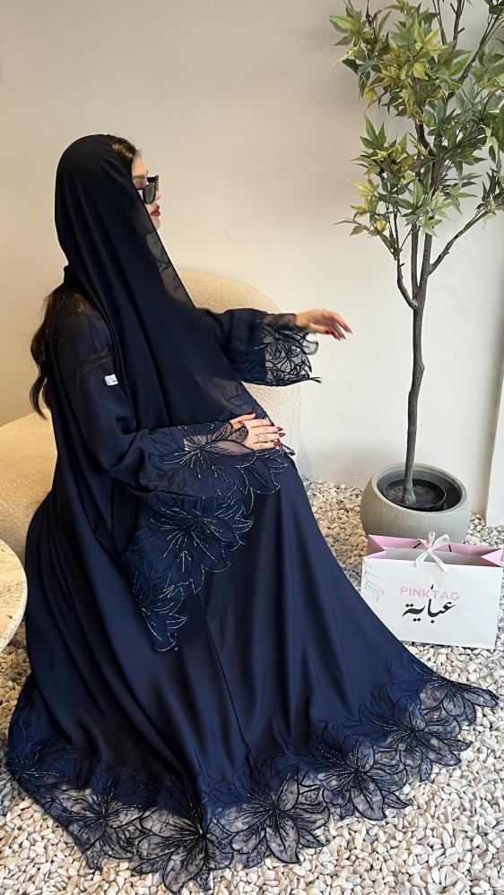 كلوش كحلي تطريز ورود على الأكمام والطرحه ومن الاسف