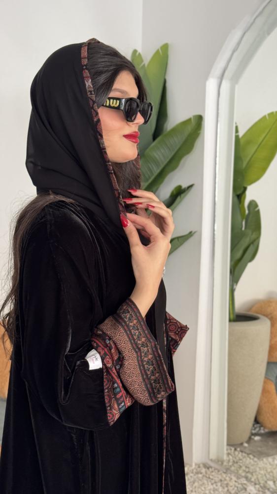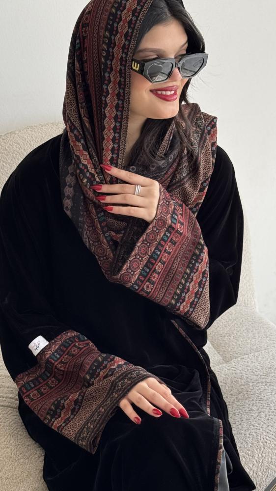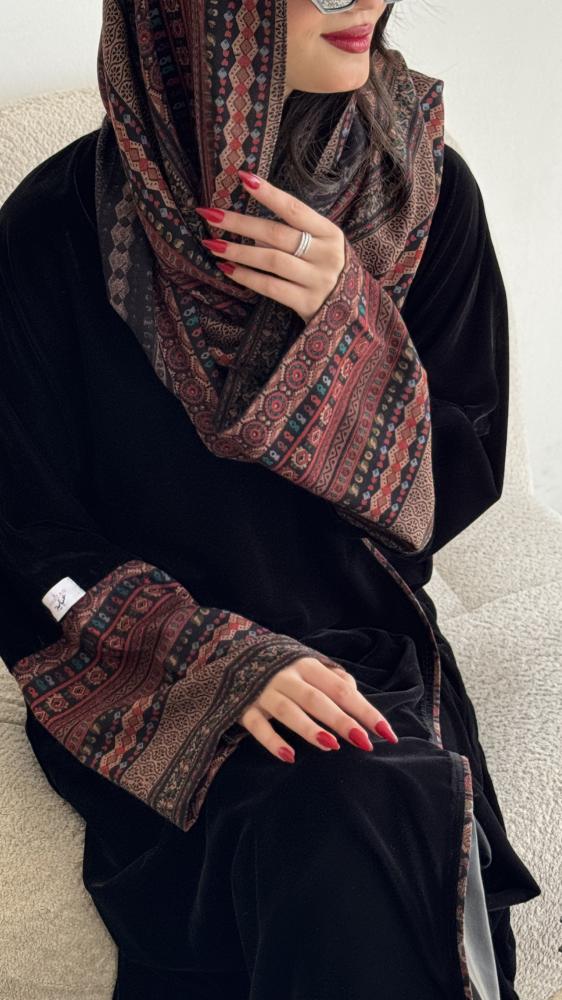 مخمل نص كلوش وكم كشميري وطرحه بوجهين (إمكانية تغيير لون المخمل أو الخامه)