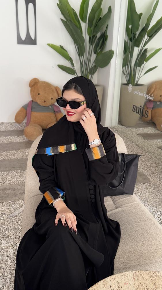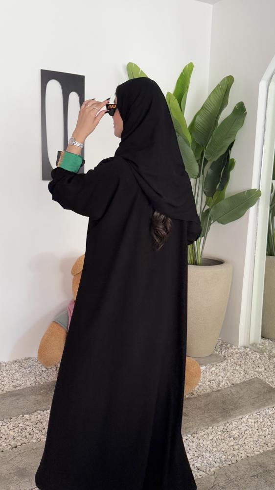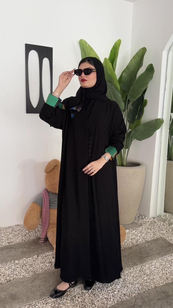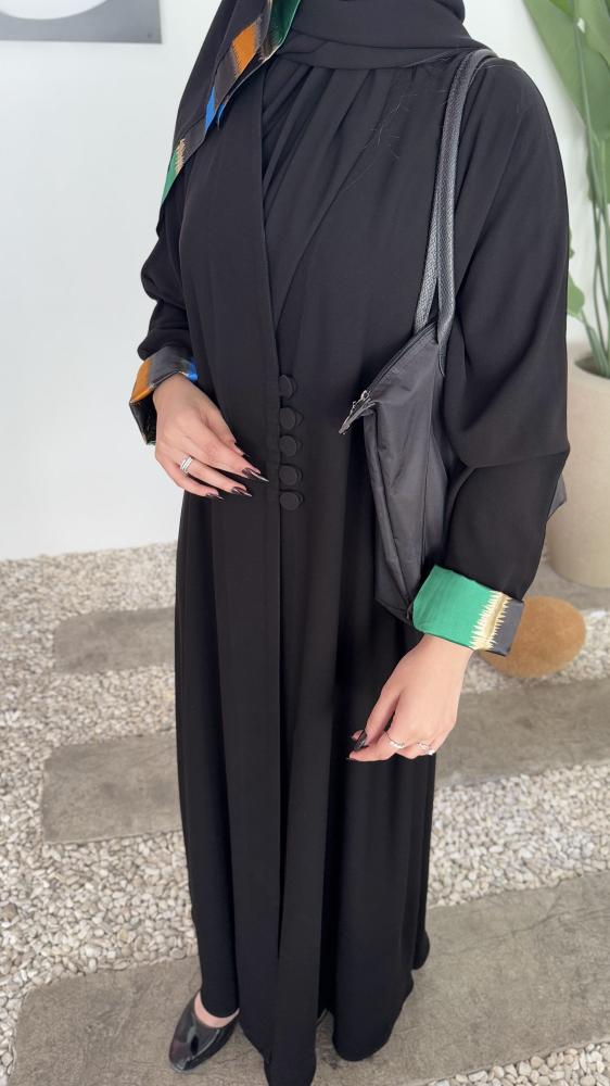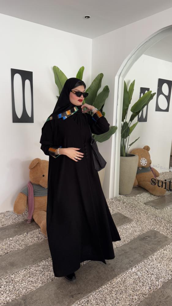- نوع المنتج: كريب ملكي بسواد فاحم كلوش وأزارير وكم تفته