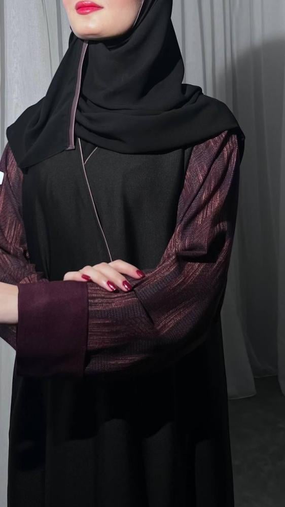 مخمل بني كلوش بكم كشميري وطرحه بوجهين(درة)