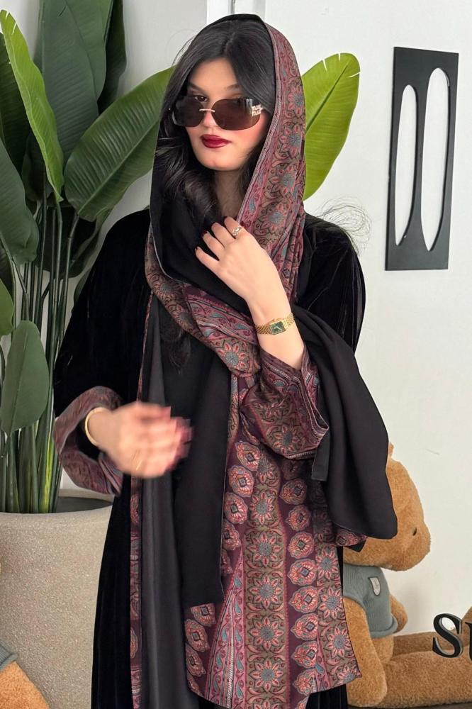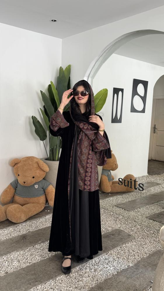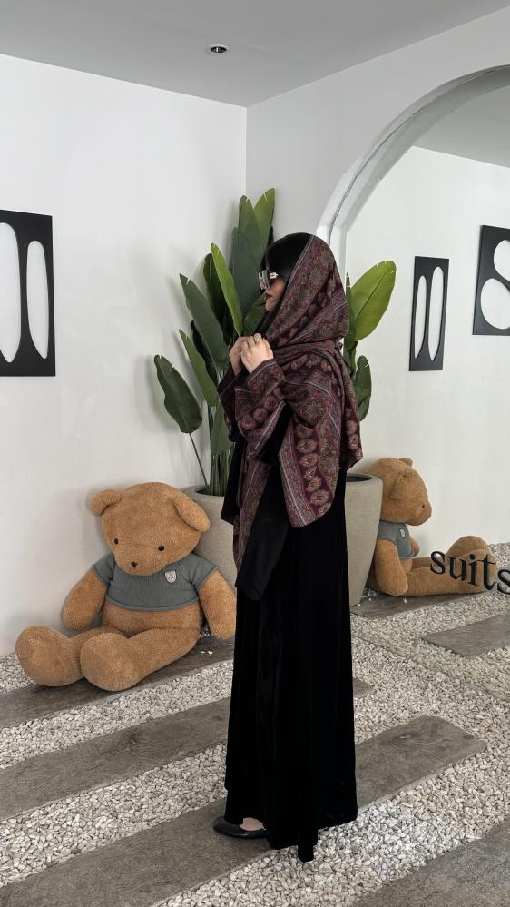 مخمل كلوش بكم كشميري وطرحه بوجهين( زمردة )