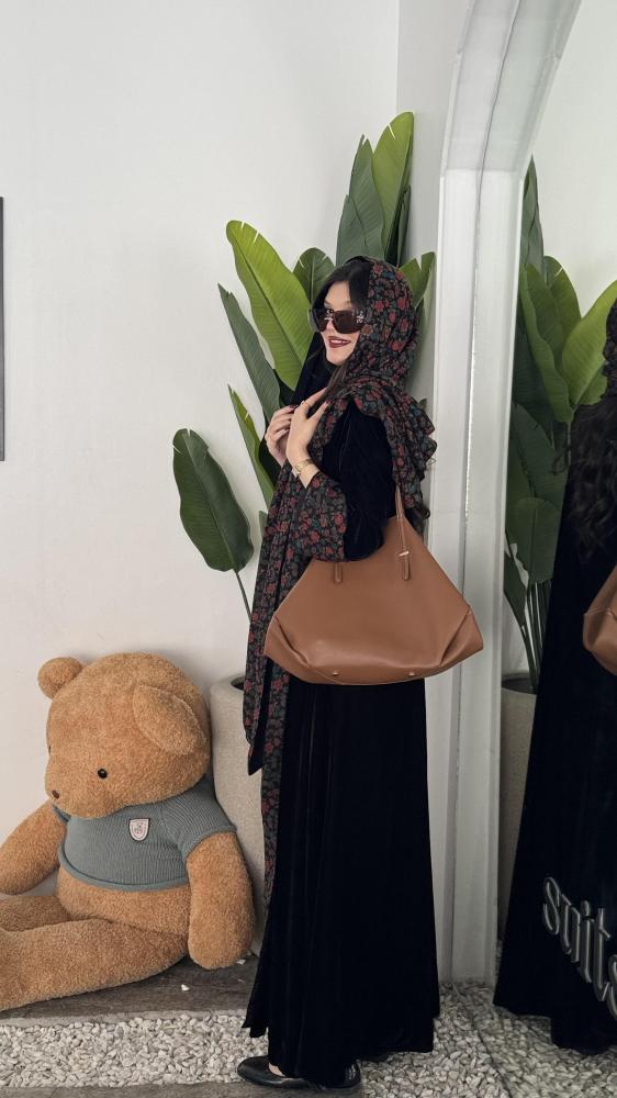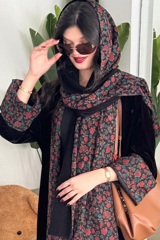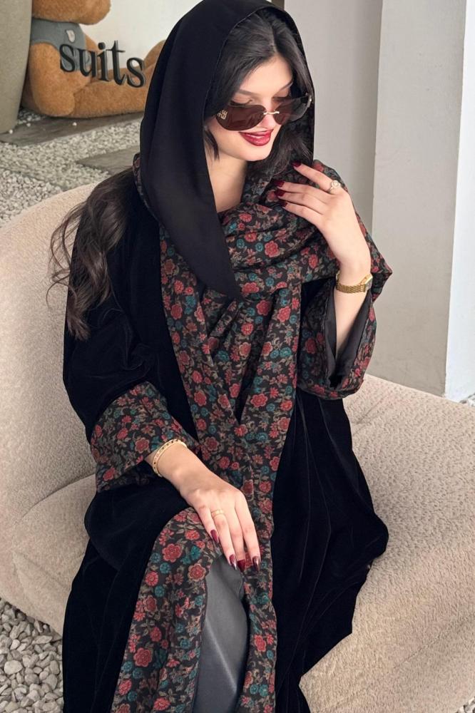مخمل كلوش بكم كشميري وطرحه بوجهين(غزالة)