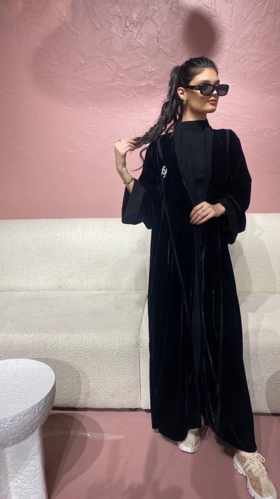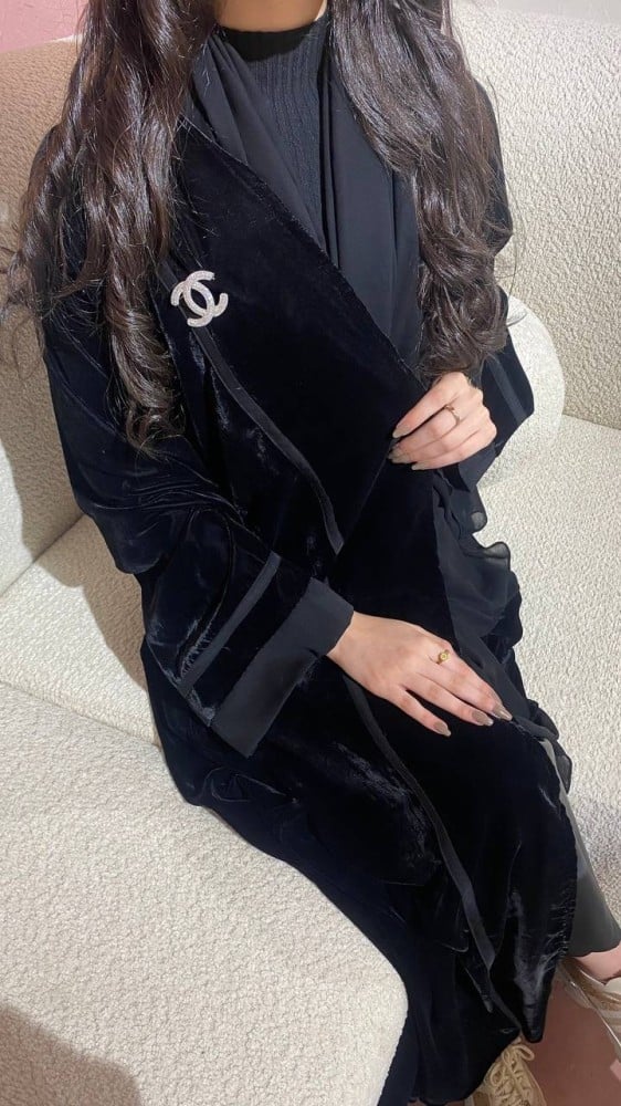 - نوع المنتج: مخمل بسواد فاحم بقماش كريب على الاكمام.